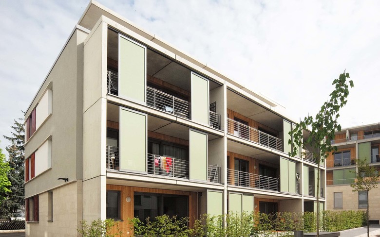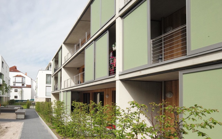 Gebaut wurden 54 Wohnungen mit 4.130 m² Wohnfläche. Auf den Stadtvillen sind vier Penthäuser. Die Wohnungen haben Passivhausstandard und sind barrierefrei erschlossen. 500 Quadratmeter Gewerbefläche stehen im Erdgeschoss entlang der Bahnhofstraße zur Verfügung.