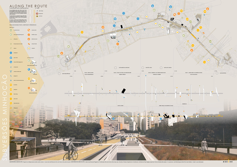 The project is developed in order to preserve the viaduct character as a walkway through the buildings and a flexible meeting place. These main factors of its current operation gives the basis to transform a habit into an opportunity of improving the whole city downtown, relating Minhocão to other neighborhood public spaces to be redeveloped and reconnected.