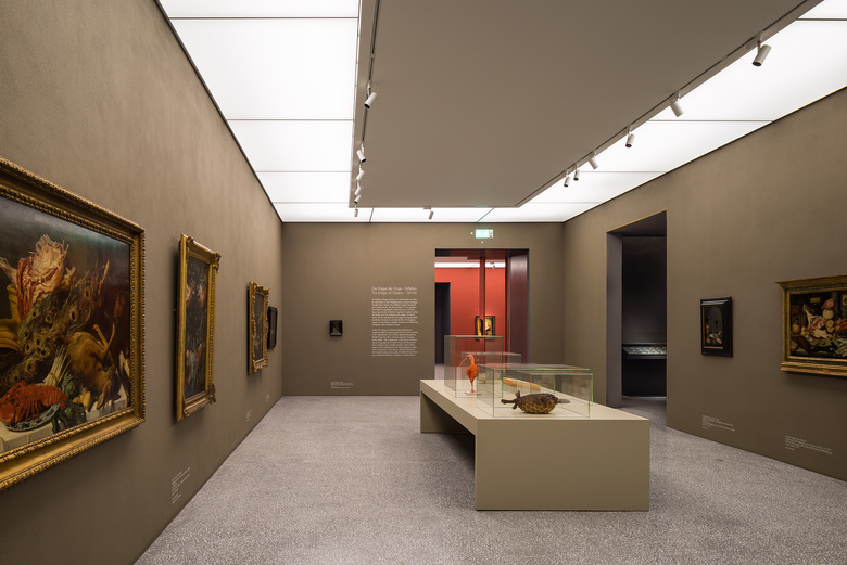 In den Ausstellungsräumen wurde speziell für das Museum eine bisher einzigartige Lichtlösung realisiert. Ein entlang der Wände verlaufender, in die Decke integrierter Kunstlichtrahmen schafft hier ein ruhiges Deckenbild und gibt den Ausstellungsmachern trotzdem flexibles Licht für die freie Anordnung der Exponate an die Hand. In der Fuge zwischen dem Lichtrahmen und dem raummittigen Deckenfeld verläuft eine Stromschiene. In ihr lassen sich Strahler frei positionieren. Sie setzen in engstrahlenden Varianten Lichtakzente auf ausgewählte Kunstwerke oder erhellen breitstrahlend größere Bereiche und Objekte.