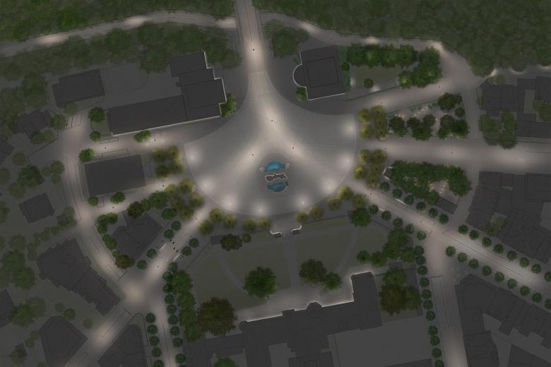 Die ursprüngliche Konzeption als Strahlenplatz lebt in der vorgeschlagenen räumlichen Form auf und verleiht dem Helvetiaplatz seine unverwechselbare Identität. Die vom Platz ausgehenden Achsen werden beibehalten. Die Anlehnung an das Strahlenkonzept geschieht durch die Formensprache des teppichartigen Belages, durch das Platzieren der radial angeordneten Beleuchtungskandelaber sowie durch das präzise Vervollständigen der Doppelbaumreihe aus Krimlinden.