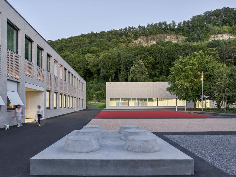 Die bestehende Schulanlage Weissenstein wurde mit einem Schulhausneubau und einer Zweifachturnhalle erweitert. Das Schulhaus definiert sich als "Lebensraum Schule" – mit Schulräumen, Kindergarten und Aula. Alle Nutzungen können einzeln oder gemeinsam betrieben werden und haben Anteil an einem zentralen Innenraum, der zweigeschossigen Schulhalle. Verbunden werden die beiden Geschosse durch ein freigestelltes multifunktionales Treppenmöbel. Die Schulhalle kann dank des abgestimmten Brandschutzkonzeptes vollumfänglich für Unterrichtsnutzungen gebraucht und möbliert werden und bietet so die Möglichkeit das architektonische Konzept in den Unterricht einzubeziehen. Die Turnhalle wird durch ihre präzise topographische Setzung in die gesamte Sportanlage eingebunden. Ein repräsentativer Eingang mit einem zweigeschossigen Foyer verbindet das Niveau der Hallen mit dem Niveau der zusätzlichen Zuschauertribünen auf dem Niveau der Aussensportanlagen.
