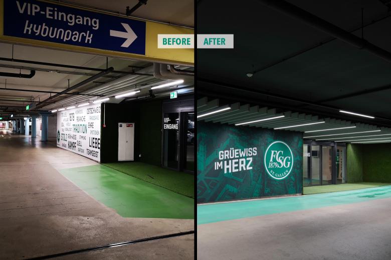 Das Projekt umfasst die Erneuerung der Beleuchtung der Einstellhalle der Shopping Arena St. Gallen sowie der Zugangsbereiche des Einkaufszentrums und des VIP-Eingangs des FC St. Gallen. Unser Ziel bestand darin, eine sichere und ansprechende Beleuchtungsplanung zu entwickeln, die höchsten Standards gerecht wird und das Besuchererlebnis und die Verkehrssicherheit aufwertet.