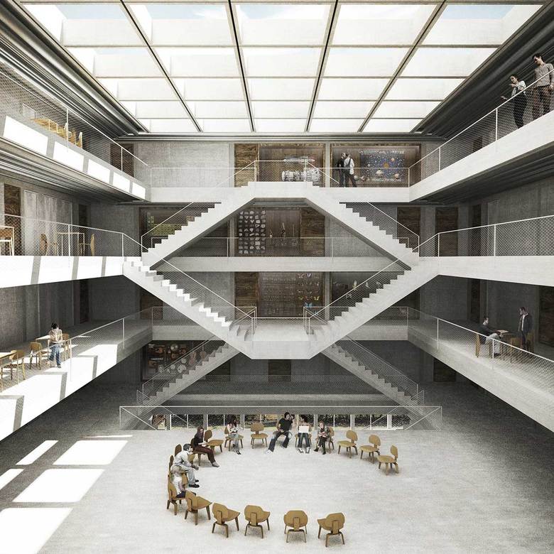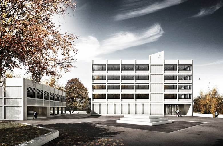Die beiden neuen Baukörper sollen gleichermassen eigenständig als auch Teil der Gesamtanalage sein und ein spannungsvolles, wie auch sorgfältiges Verhältnis zum Bestand aufbauen. Gestalterische Elemente und Gedanken der bestehenden Schule werden aufgenommen, adaptiert und neu interpretiert. Gleichzeitig wird ein neues Ganzes geschaffen, welches genug stark ist diese Elemente zu tragen.
