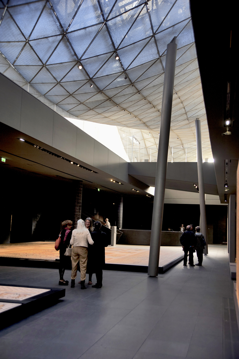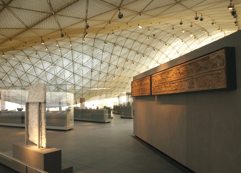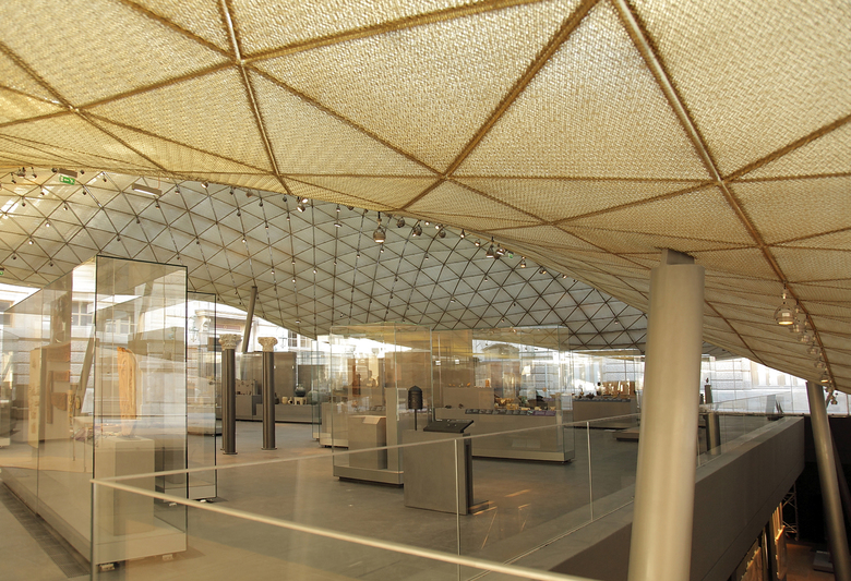 Natural light will be diffused by the covering ‘Veil’, the skin of which will be treated so as to graduate the intensity and avoid glare. In high summer, the level of light in the exhibition spaces will not exceed the lux level required for the proper conservation of the artifacts on display and the comfort of visitors.