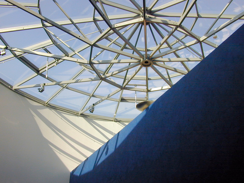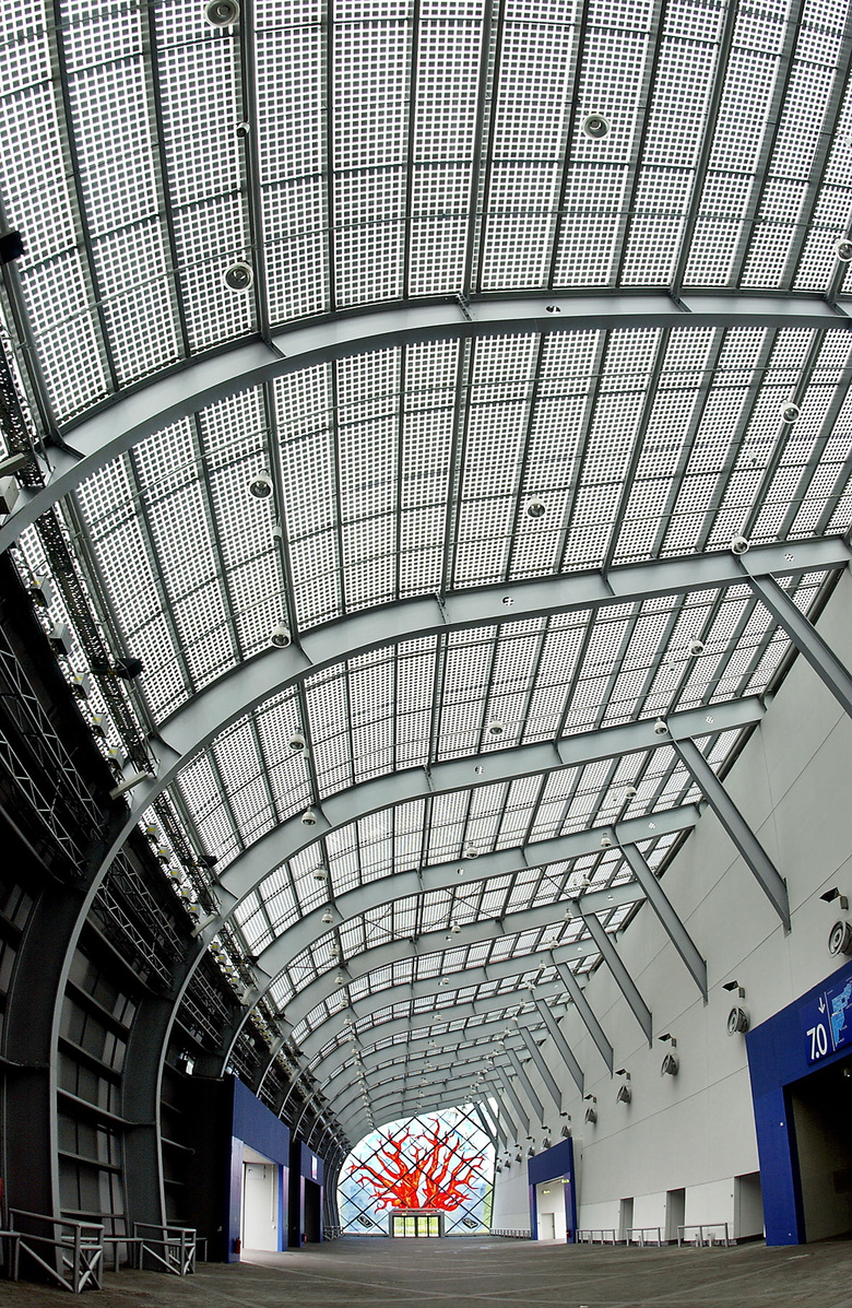 The roofing of the pavilion is surprising, inside, for its size and for the theatrical effect created.