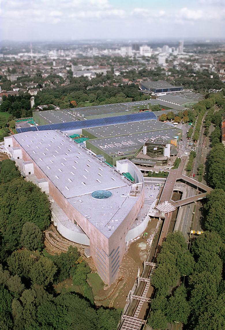 After doing the Milan Fairgrounds, Bellini was called to realise a project to add on the Essen Fairgrounds.
