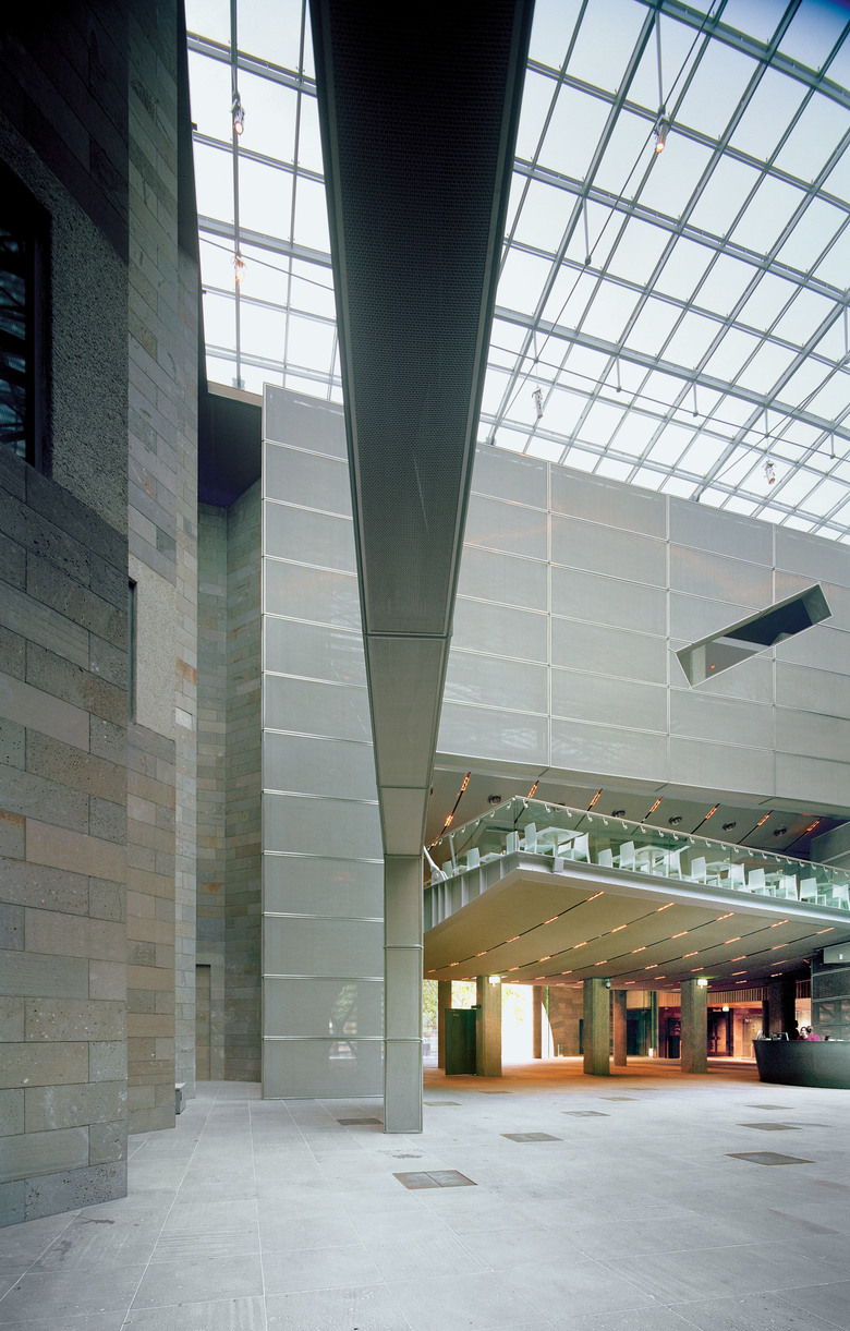 The grand central hall is covered by a spectacular glass ceiling, and thus becomes the vital and articulated interface with the city, performing all the informational and relational functions.