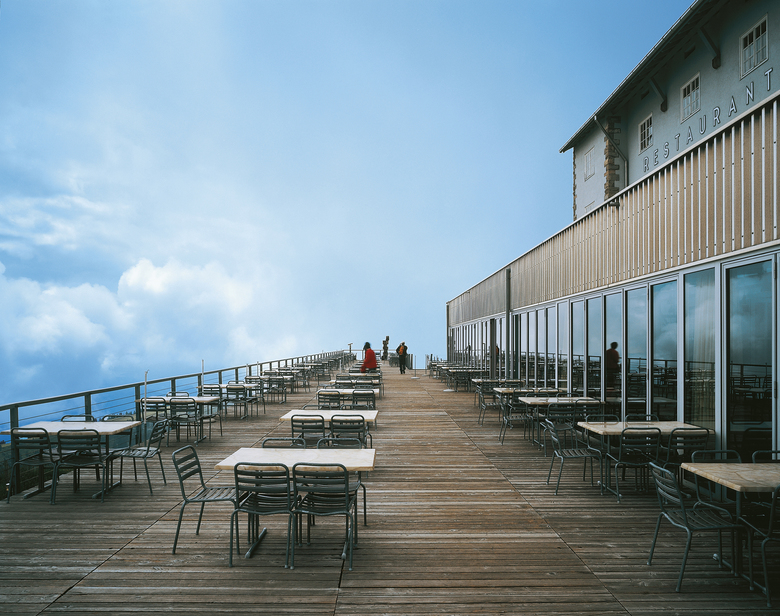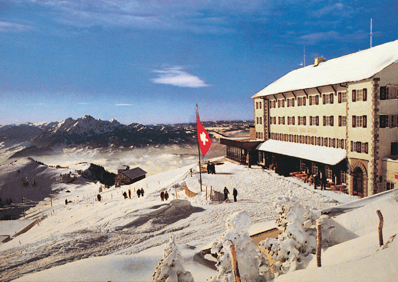 Bereits im 19. Jahrhundert war dieser Standort durch ein Belle-Epoque-Hotel besetzt. Nach dessen Abriss entstand 1952 auf den Fundamenten ein neues Berggasthaus. Die Aufgabe bestand in der Neugestaltung des Hauptzugangs, der Ergänzung einer attraktiven Terrasse, der Vergrösserung der Restaurant-flächen, des Einbaus einer neuen Hotelküche sowie der Anpassung der technischen Einrichtungen. Die Beziehung der Anlage zur Topografie wurde geklärt. Das Hauptgebäude wird durch die Erweiterung präzise geortet. Rampe und Sockel betonen nun die Falllinie, die vorgelagerte Terrasse die Horizontale. Der aus Beton und einer vorfabrizierten Stahlkonstruktion erstellte, mit Aluminium-Trapezblech verkleidete Anbau fasst die Anlage zu einer Einheit zusammen. Das Hauptgebäude wird als Hauptvolumen der neuen Gesamtkomposition wahrgenommen. Die südlich ergänzte Terrasse setzt sich kontinuierlich von Gelände ab und wird im äusseren Bereich zur Aussichtsplattform. Anbau und Terrasse sprechen durch ihre Materialisierung und einfache Detaillierung die Sprache funktional-alpiner Architektur.