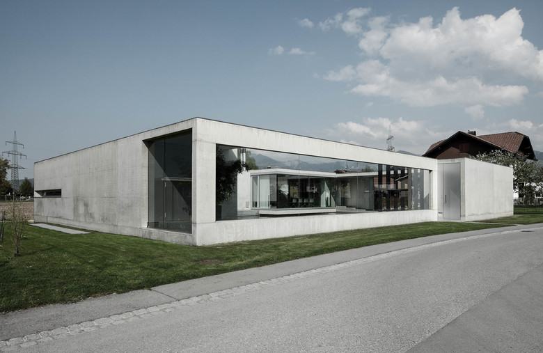 Am Siedlungsrand von Rankweil Brederis, umringt von neuesten Einfamilienbehausungen, findet sich eine hybride Wohnskulptur jenseits der gewohnten Baunormalität. Verzweigte Pavillionstruktur, perforiertes Atriumhaus, ultramoderner Vierkanthof? Nichts dergleichen entspricht dem eingeschossigen Bauwerk, ursprünglich gedacht als Badehaus am geplanten Biotop im Obstgarten hinterm Haus. Der Wunsch der Bauherren ihrem 60er Jahre Einfamilienhausidyll im eigenen Schwimmteich zu entfliehen, implizierte den Gedanken an ein dazugehöriges Badehaus. Die Architekten, der Faszination des Badens am Naturteich bald erlegen, dachten weit über die anfänglich an sie gestellte Aufgabe hinaus. Warum Naturwasser nicht zähmen, in abstrakte Formen gießen und es in die Mitte nehmen? Warum das kleinstrukturierte Wohngefühl der 60er nicht gegen ein großzügiges Raumkontinuum der 10er Jahre tauschen? Wandelnde Licht- und Schattenspiele, gezielte Aus- und Durchblicke, räumliche Enge und Weite, das Haus als Weg und Platz und der See mittendrin - das alles zum Programm machen?