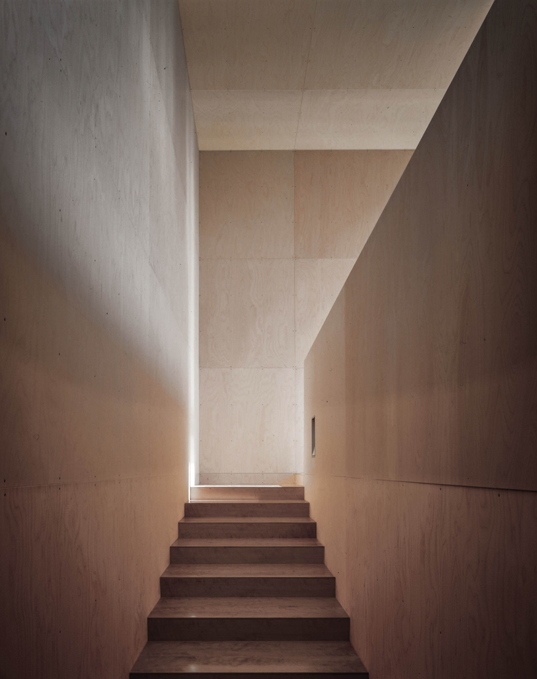 So birgt das Haus Qualitäten, die es zu entdecken gilt. Es offenbart sich nicht auf den ersten Blick, sondern entfaltet sich im Begehen, beim Durchschreiten. Die klare Zonierung von Privat und Öffentlich gewährt sparsame, verheißungsvolle Einsichten. Feinheiten wie Wandversätze, Vorlegestufen, optische Umlenkungen durch kleine Manipulation in Grundriss und Schnitt resultieren in einem ausgeklügelten, nur mit geschultem Auge wahrnehmbaren Ineinanderfügen.