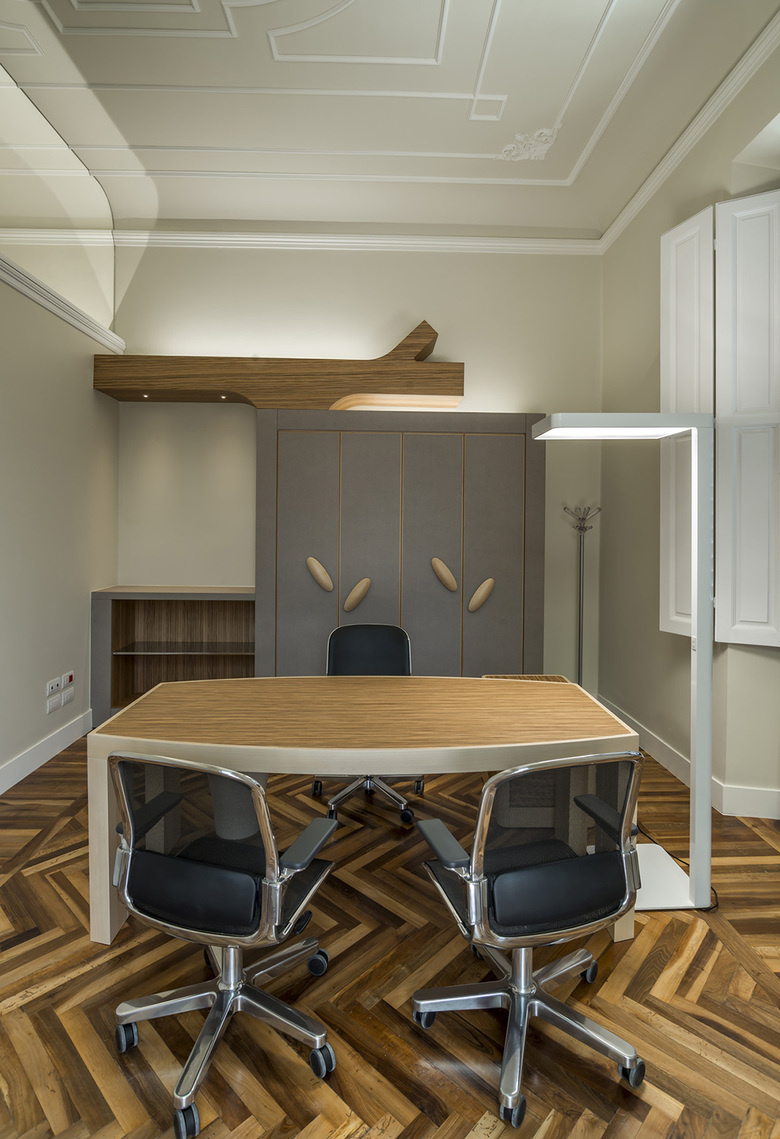 Di fronte a un intervento di restauro conservativo di tipo filologico, con il progetto ci siamo inseriti sovrapponendoci in maniera naturale alla parte architettonica esistente, progettando una “seconda pelle” con opere di falegnameria e di design.
