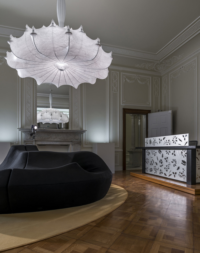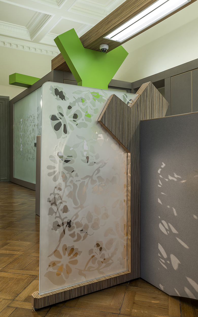 Ne è venuta fuori un’immagine un po’ bucolica, fatta di citazioni floreali e naturalistiche che caratterizza l’intervento, coinvolgendo tutti i piani del fabbricato, dal piano terra al secondo, in una costante ricerca di continuità tra “dentro e fuori”.