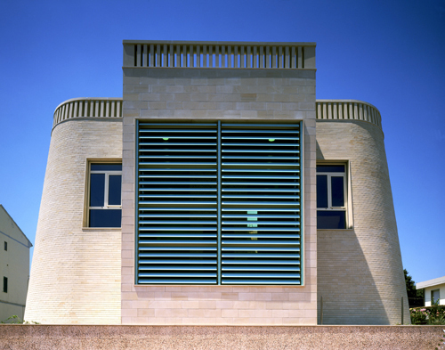 Nel centro di Castagneto Carducci, lungo la strada principale e vicino alla stazione ferroviaria, l'edificio ospita il quartier generale della Banca di Castagneto Carducci. Ledificio si sviluppa su tre piani, per complessivi 750 mq. Le aree operative si trovano al piano terra, mentre al piano primo ci sono gli uffici direzionali e le sale riunione. Il piano più basso (semi-interrato) è riservato a spazi multi-funzione, accessibili anche direttamente dall'esterno. L'edificio è interamente rivestito con pietra Calasina, una pietra arenaria spagnola.