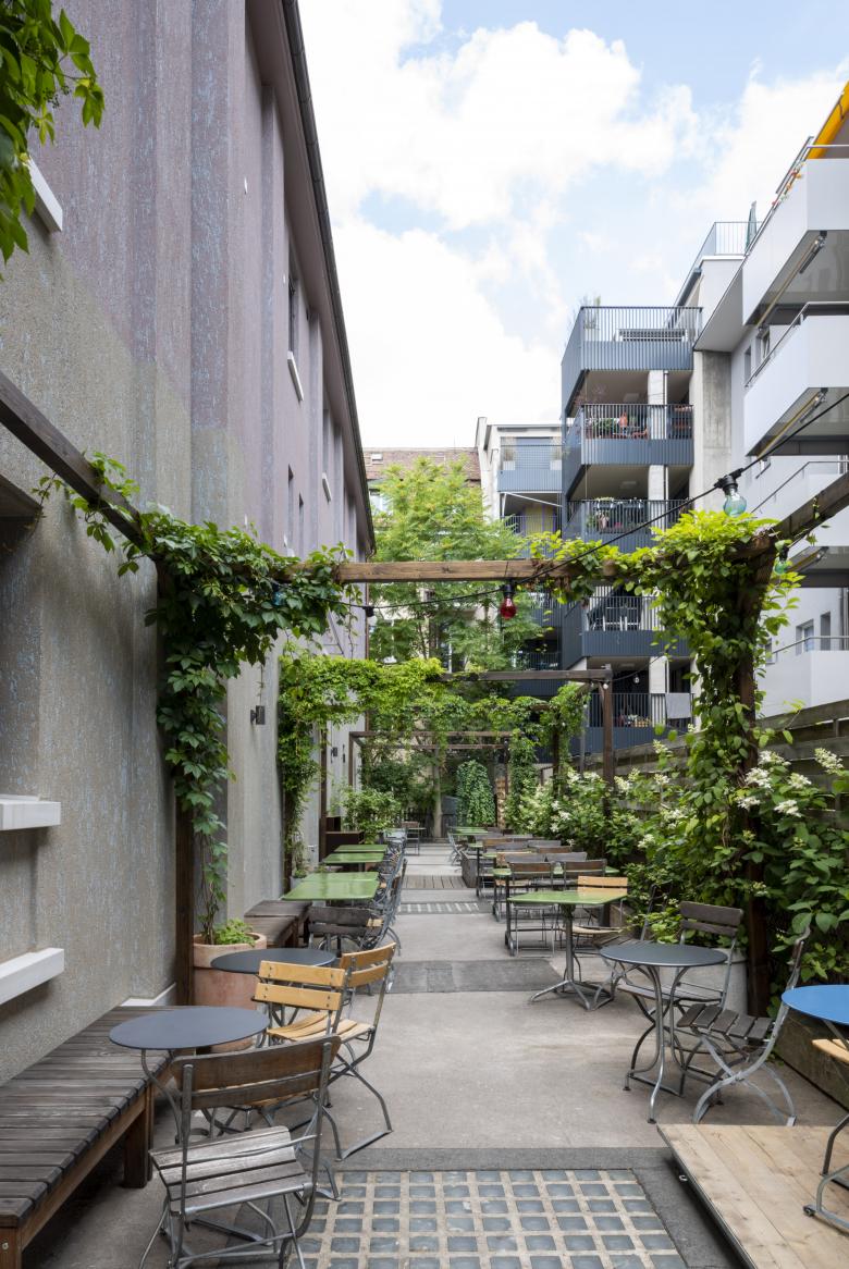 In der ersten Etappe (2008) wurde die früher als Lagerhaus genutzte Hofliegenschaft im Inneren umgebaut. Die knappen finanziellen Mittel machten eine umsichtige Planung und das etappenweise Vorgehen notwendig.