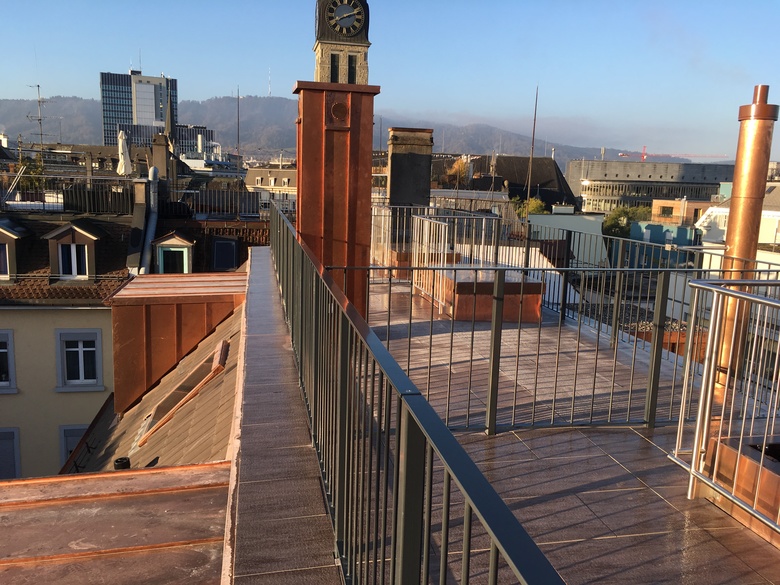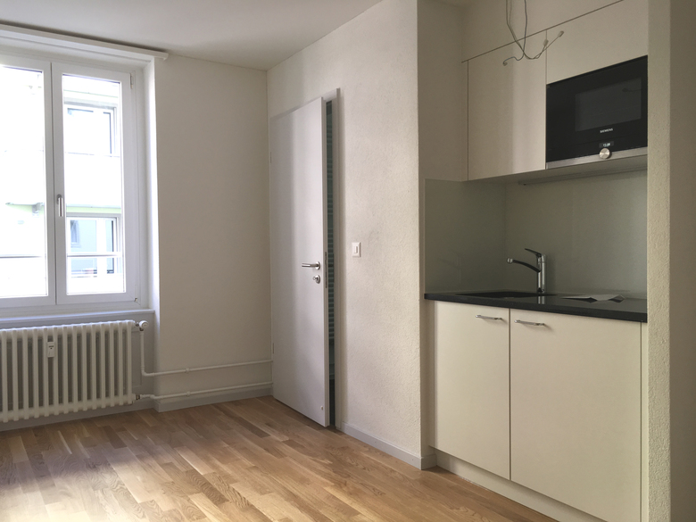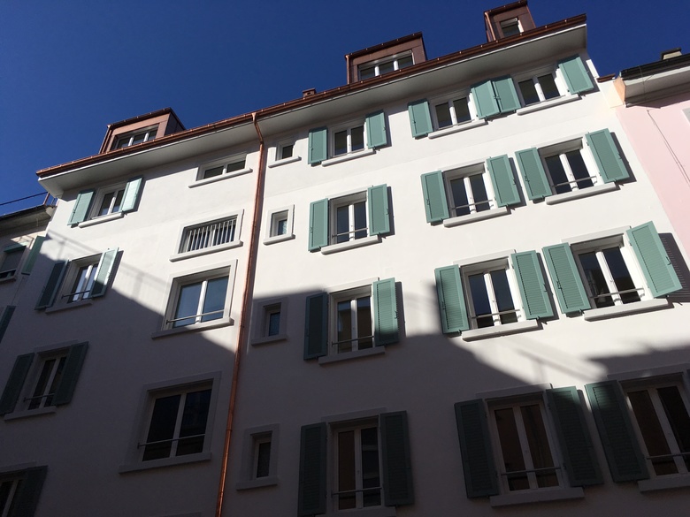 Die Erneuerungsarbeiten enthielten die hofseitige Aufstockung und Grundrissoptimierungen der 2.5 und 3.5 Zimmerwohnungen, die Erneuerung sämtlicher Oberflächen innen und aussen, statische Verstärkungen und den Liftersatz, elektrischer Drahtersatz und Umrüstung auf LED Beleuchtung, eine ganzheitliche Haustechnik inkl. Ersatz aller Steigleitungen, neue Nasszellen und Küchen sowie der Ausbau der Dachterrassen.