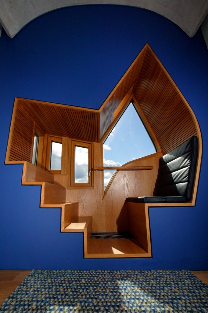 In 1998 EMBT won the bid to design the new Edinburgh Parliament building. The proposal generated great enthusiasm due to its organic capacity to combine existing elements with new technologies through the contemporary and unique language of the Barcelona studio. The project’s development centered on reflecting the characteristics of the country and its inhabitants via a new way of building that was directly linked to the land itself. This close tie to the site and its setting would, when the adjacent distillery is demolished, enable the generation of multiple perspective lines on the city. Intentionally, a contrast is sought, a conceptual distance, between the new construction and Holyrood Palace, the twelfth-century royal residence that has been renovated many times. Unlike the palace, which dominates the landscape, the new Scottish Parliament drops literally into the hillside terrain, the lowest part of Arthur’s Seat, and appears to sprout from the living stone.