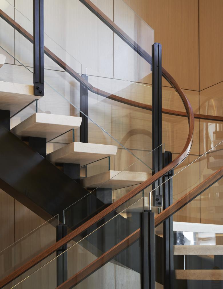 Materials played a key role in unifying but creating distinct guest experiences between the ground floor dining & gathering spaces and the Hotel areas above. The space draws on signature Nobu design elements combined with traditional Japanese materials and an open environment to engage the street front. The ground floor restaurant and lounge is layered with warm wood wainscoting, flooring, and furniture, while back-lit from rice-paper glass walls. For the Hotel reception and guestrooms, this relationship to light and dark is inverted; light marble flooring, bleached white oak paneling, and grasscloth wall covering contrast moments of rich bronze and teak details.