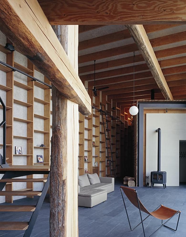 その豊かな自然環境の中での建築に際して、都市型の生真面目で自己完結的な秩序の導入は相応しくないように思えた。参考になったのは施主の趣味だというビーチコーミングの考え方である。浜辺に打ち上げられた様々な素材を、それらの性質や声を良く聞き取ることで、材がなりたい形に整えるように立体を組み上げていく。この時、秩序は絶対的な支配者というよりも、材や環境との関係によって次々に変容する動的でしなやかな存在である。求めるのはそのような「開かれた秩序」のあり方である。