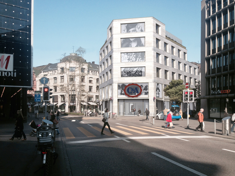 Das neue Erscheinungsbild von C&A soll sich im Zentrum von Zürich als Flagshipstore entsprechend frisch präsentieren. Dieser Anlass wird genutzt um gleich die komplette Gebäudehülle des Hauses zu erneuert und auf den neusten energetischen Stand zu bringen.