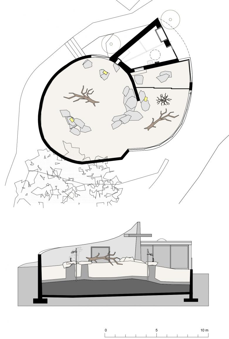 Der Bau wurde Anfangs der 60er Jahre von Wolfgang Behles erstellt. Er ist ein zentrales Beispiel der expressiven und bildhaften Gründer-Architektur des Kinderzoos. Vor die Frage gestellt, ob der Bau abgerissen oder umgebaut werden sollte, entschied sich M&T für den Erhalt des expressiven Zeitzeugens. Die Tiefe des Grabens erlaubte es, eine Tierart zu wählen, deren Hauptbeschäftigung das Graben ist. Aufgefüllt mit Erdmaterial, verliert die Anlage den «Grabencharakter», bleibt jedoch als Skulptur mit zeichenhafter Schneckenform lesbar.