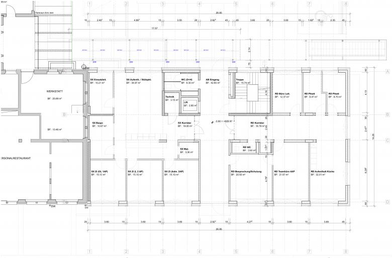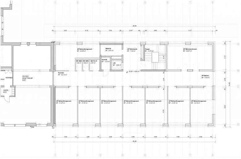 Generell wurde auf grösst mögliche Nutzungsflexibilität geachtet denn niemand weiss wie sich die Bedürfnisse des Spitals zukünftig weiter entwickeln werden. Die Räume entlang der Hauptfassade sind nutzbar als Büroräume, Pflegezimmer, Behandlungsräume sowie als Wohnräume. Mit vertretbarem Aufwand können die Nutzungen an die jeweiligen Bedürfnisse angepasst werden.
