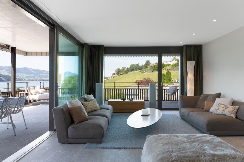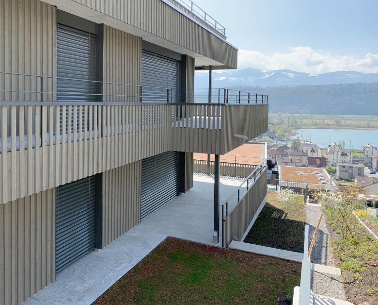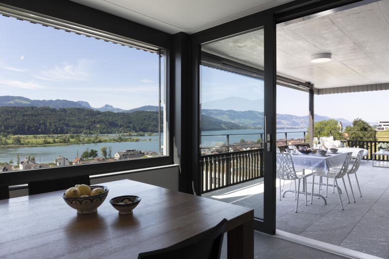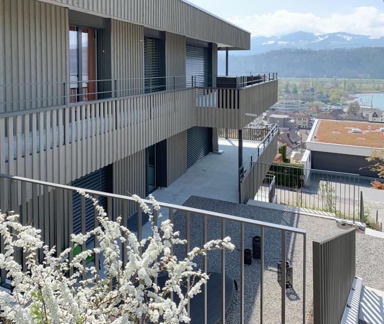 zwei Mehrfamilienhäuser einer Erbgemeinschaft. Die Hanglage mit einmaliger Sicht auf den Obersee verschaffte zwei grosse Vorteile: Aussicht und Gartenzugänlichkeit. Es entstanden eine Attika- und neun Gartenwohungen mit Aussichtsterrassen.