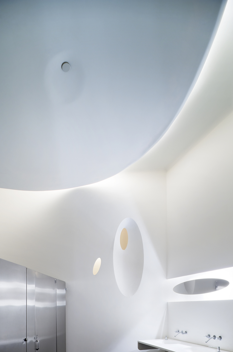 Located in the old Penny Savings Bank, Banq Restaurant capitalizes on the spatial and functional peculiarities of the space as a ground for speculation and invention. Requiring maximum flexibility on the ground for the re-organization of seating arrangements, in contrast the ceiling is encumbered by the myriad of mechanical, structural, and acoustic limits inherited from the building.