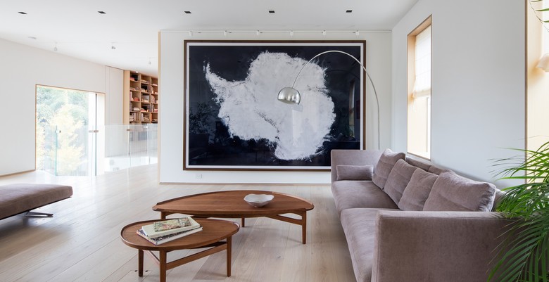 The most salient spatial intervention is the introduction of two multi-height spaces. The first connects the entry level down to the garden level, with a new living room that extends to the southern landscape. The second vertical space connects the entry up to the former attic, now a play loft capped by a skylight. With these two interventions the once stratified realms of storage, bedrooms, work areas, and living areas become seamlessly intertwined.