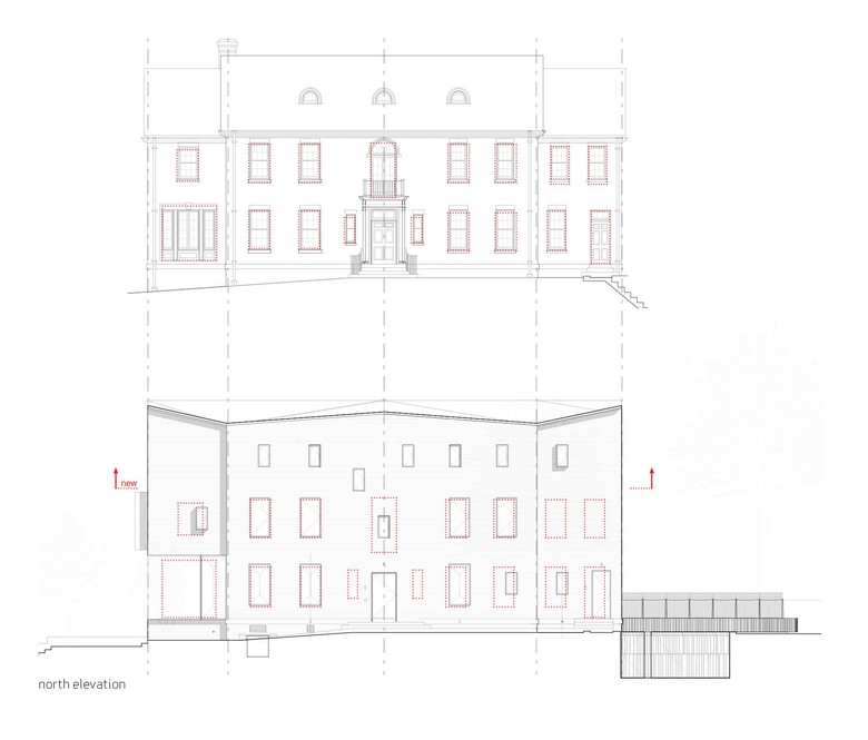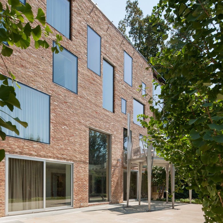 The Rock Creek House is an adaptive re-use project of a 1920’s brick structure that was originally composed of two floors, with a mechanical basement and attic. This adaptation leverages the robustness of the existing structure to capture the attic and basement to double the house’s size, while expanding its functions into the landscape. While the northern street façade remains relatively intact --formal, insular, and composed-- the southern exposure to Rock Creek is made more generous. By expanding the areas of glazing and establishing a more precise relationship between rooms and their respective apertures, a new architectural order is established on the south – more informal, open and in dialogue with nature.