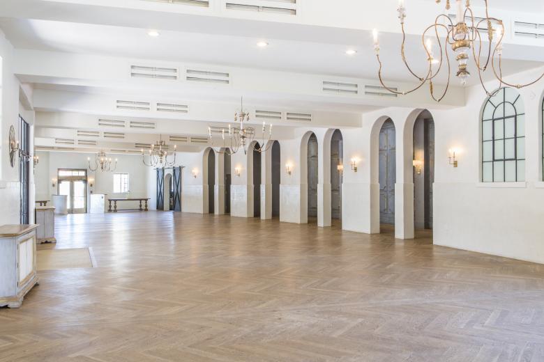 Budget and aesthetic priorities were centered on the historic materials, replacing primary mechanical systems and creating a ‘Destination’ facility. Creating an outdoor venue that enhanced the hall both functionally, commercially, and aesthetically helped achieve that mission. Pricing offsets were discovered in a performance-based life safety solution that eliminated the requirement for fire suppression systems, that would have significantly impacted the stucco ceilings as well as typical installation costs. As a result, the owner was able to make substantial donations / improvements to the adjacent public park improving their own property as well as the neighborhood’s.