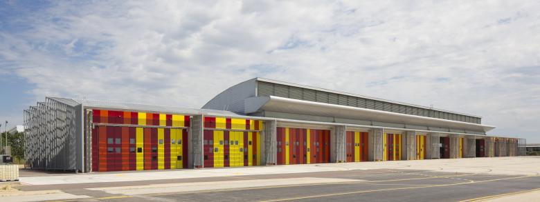 Le projet de restructuration et d’extension de la base hélicoptère pour la sécurité civile à Nîmes Garons est un projet relativement complexe au regard de deux contraintes majeures. Tout d’abord le fait que les travaux devaient être réalisés sans interruption de l’activité de maintenance des hélicoptères demandant une rigueur extrême dans le cloisonnement des zones de chantier et le phasage des travaux, ensuite au regard des enjeux environnementaux classé en BBC et Très Haute Performance Energétique (TPHE). A cela s’ajoute une disparité des entités bâties dans le terrain qui nécessitaient la mise en place première d’une cohérence de site.