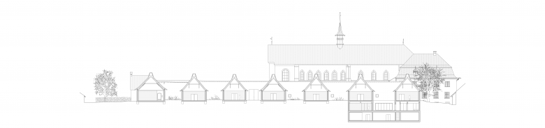Als Vorbild für die wiederholte Transformation der Klausen dient der Blick zurück auf die ursprünglichen Mönchszellen mit ihren eigenwilligen Silhouetten, dem spärlichen Öffnungsverhalten und den markant aufragenden Kamintürmen. Die empirisch entstandenen Klausen waren und sind Ausdruck einer bescheidenen Lebensform in diesen Gehäusen. In diesem Sinne soll die Wahrnehmung der Klausen als Gehäuse der kontemplativen Auseinandersetzung – mit Kunst – verdeutlicht werden. Zwei wesentliche Merkmale sollen fortan die Gestalt der Klausen zum Ausdruck bringen. Die einfache Giebeldachkonstruktion wird – im Rahmen der energetischen Ertüchtigung – im First zu einem angemessen breiten, belichtungsspezifisch begründeten Dach- hut überformt. Das zenital entstehende Oblicht kann als extrudierter Kaminaufsatz – in anderer Funktion – über die gesamte Firstlänge verstanden werden. Dabei ist das Aufbäumen des Daches wiederum das Abbild einer Aufgabe, welche die Belichtung der Klause für einen erhabenen Ausstellungsraum zum Ziel hat. Die bestehenden Fensteröffnungen werden soweit reduziert, dass ein hochliegendes Fenster im Norden einzig den Ausblick an den bewaldeten Klosterhügel freigibt. Von aussen ist das ein starkes Zeichen eines in sich gekehrten Raumes, von innen entsteht ein stimmungsvoller Bildausschnitt als einflussfreie Verbindung zur Aussenwelt. Diese Massnahmen sollen den Nordklausen wieder eine zeitgemässe ikonografische Erscheinung verleihen und eine starke Verbundenheit mit der Nutzung erkennen lassen – ähnlich der Klausen der Kartäuser.