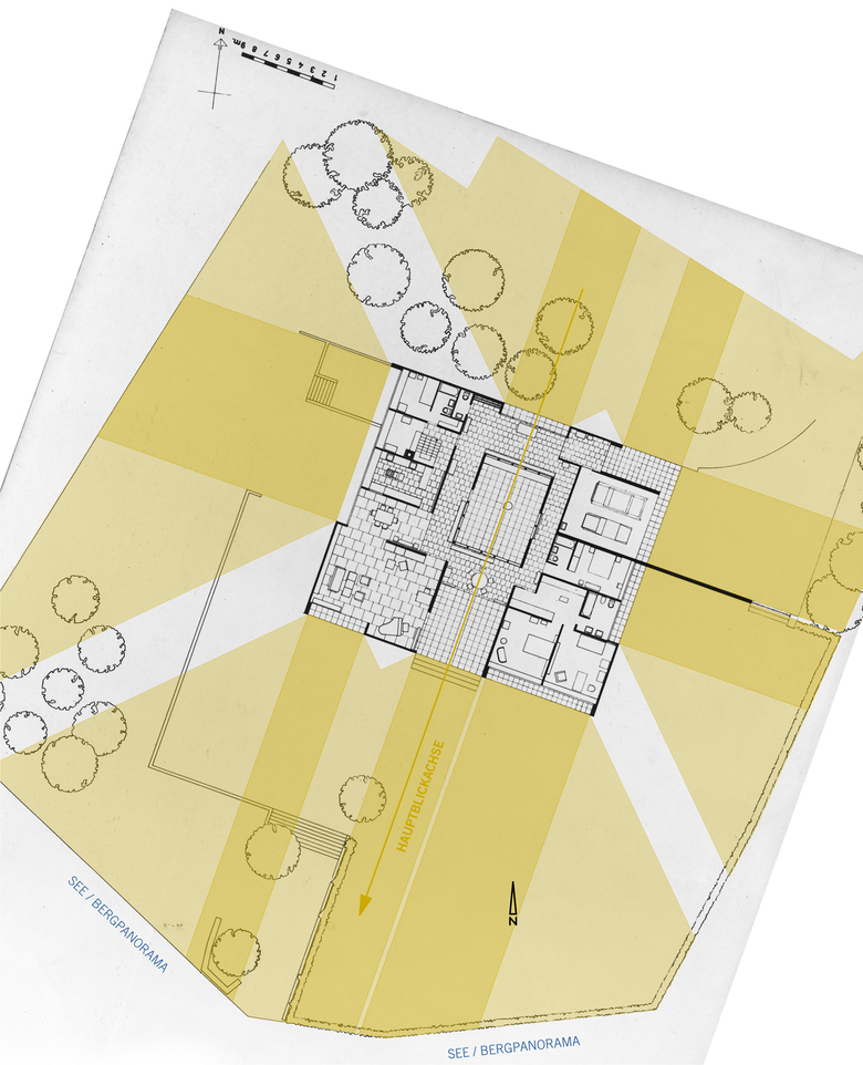 Eine Machbarkeitsstudie soll aufzeigen, ob auf dem Grundstück zusätzliches Bauvolumen realisiert werden kann, ohne das Schutzobjekt in seiner Qualität und Wirkung zu beeinträchtigen.