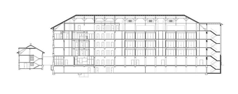 Die Räumlichkeiten für die neue Nutzung soll unter Respektierung der ursprünglichen Strukturen erfolgen. Als Reminiszenz an die Zeit des Zeughauses wird die Raumbildung so vorgesehen, dass mit den neuen Einbauten die starke Präsenz des rohen Betonskelettes auf allen Geschossen spürbar bleibt. Die zeitgenössischen Eingriffe unterscheiden sich dabei insofern, dass sie sich als mehrheitlich hölzerne Einbauten in das bestehende Ordnungsprinzip einfügen. Immer wieder zeigt sich das Tragwerk und die rohen Oberflächen der Decken durch die Einbauten hindurch. Dieser feine Kontrast der Gegenüberstellung und Inszenierung von rohem Betontragwerk und hölzernen Einbauten strahlt erst im Zusammenspiel eine optische und haptische Behaglichkeit aus. Einzig im Erdgeschoss wird die Tradition des pragmatischen Ausfachens mit geschlämmten Backsteinen aufgegriffen. Deckungsgleich folgt die Raumbildung der Gliederung des Betonskeletts und formt grundsätzlich die allgemein zugänglichen Räumlichkeiten.