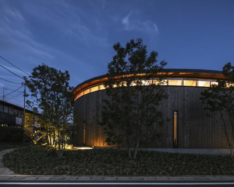 The design aimed for an open building that could enjoy a rich natural environment even within a residential area and serve not only as a private place but also as a gallery or party venue. The curved tile roof frames the sky, collects rainwater, and reflects the sun's light softly. Sitting on the bench in the courtyard and looking up, we can feel as if we have become a part of nature, integrated with the sky.