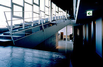 By first wrapping the entire building with a continuous plate the boundary between inside and outside is shown clearly. This secures a compact space for living in the varied climate of Kurobe and meets the security needs for a women's dormitory specifically requested by the company. At the same time by opening the common areas, fluidity and continuity are brought to the relationship between interior and exterior spaces as well as that with the various communal facilities inside. We thought that balancing the wrapping and opening in this way would make it possible to support a relatively free private life as well as to promote relations with neighbors within a secured comfortable communal residence.