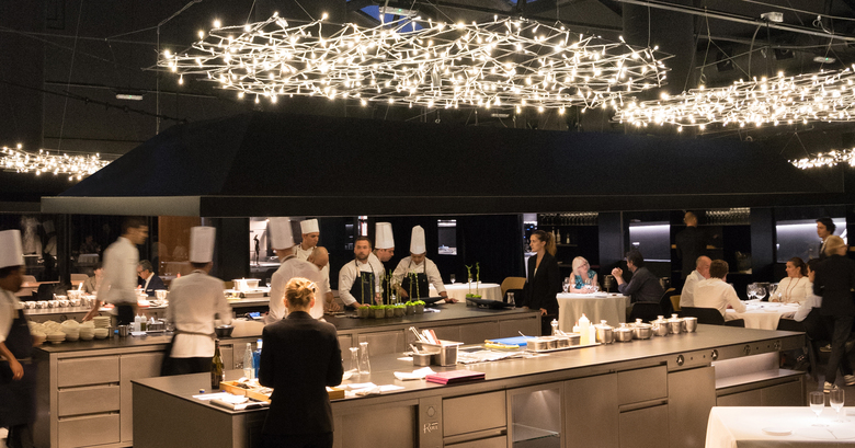 This time, however, an even more radical step has been taken by locating the kitchen as not only the central feature of the intervention but also as an immersive element. The restaurant IS the kitchen.