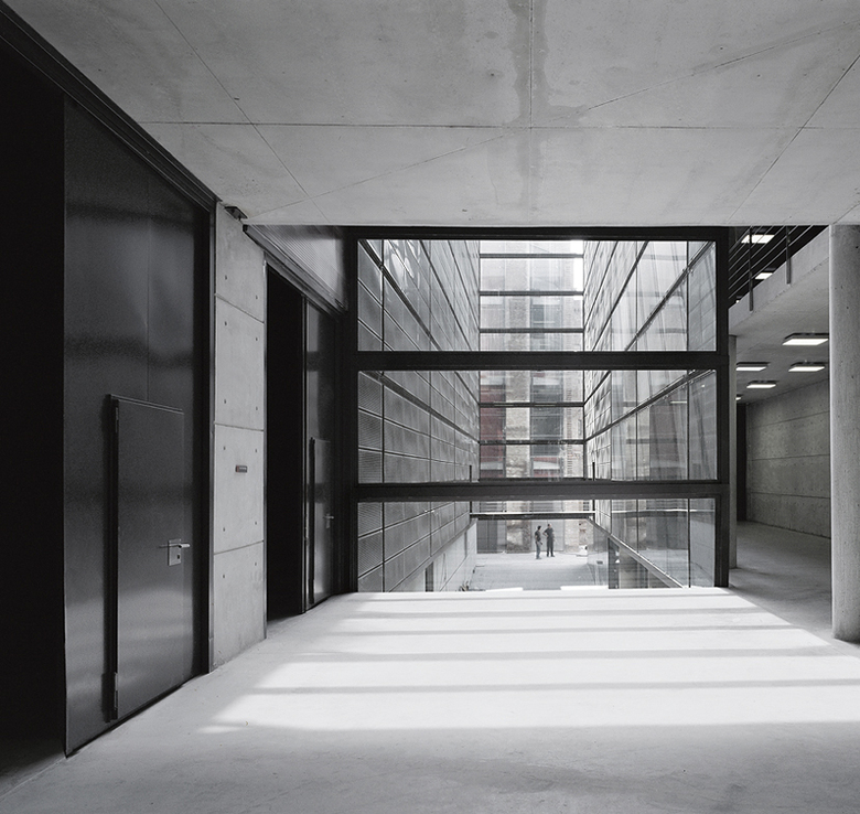 The office tower offers great flexibility of use, thanks to the non-existence of pillars or intermediary structures, thus leading to a series of diaphanous floors. A single, repeated window, unfolding continuously on all the façades, provides excellent illumination and views from anywhere in the tower, as well as great versatility in terms of the internal layout. The glass panes on the inside of the reticle are dazzle-free and protected from direct exposure to the sun, rain and dirt. The varied layout of the different floors permits a certain functional specialization of the programs. The audiovisual production and teaching activity in the low body and the business management activities in the tower lead to programmatic unity.