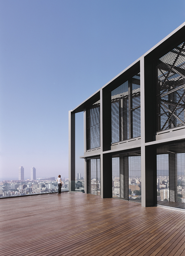The building is the first piece in a sequence that culminates in the Agbar Tower. The end wall of the building pivots and is positioned front-on to the Diagonal, thus turning the casual look of the foreshortening into a respectful façade aligned with the wide avenue. The first four floors of the building are perforated to provide a conclusion to Calle Bolivia and to focus on the urban perspective. With the first displacement of its jut, the tower forms an arris that accords it tension and character. On a lower level, and coinciding with the plinth of the neighboring building, the tower redirects its alignment, generates a new plane, constructs the façade front-on to the Diagonal, and permits the sightlines of the adjacent building to open up. On its upper floors, the building seeks, on the diagonal, after the top arris of the tower, using its geometry to give it a sculptural dénouement, while the interaction of the two alignments generates a dynamic play of shadows. The low body or plinth penetrates beneath the tower and with its transparent façade gives rise to a new public space, a triangular piazza. Around it, the building is converted into a sculpture that is respectful and attentive towards the solicitations of the city.