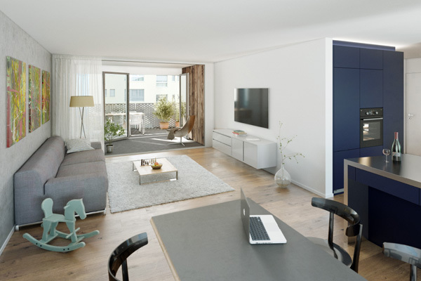 Ein gut durchdachtes Raumkonzept mit wenig Erschliessungsflächen, einem nutzbaren Wintergarten vor dem grossen Balkon und einer straff konzipierten Küche als Wohnmöbel zusammen mit hochwertigen Materialien ergeben ein sinnliches Wohnen in Eigentumsstandard. Raffinierte Detaillösungen von entwickelten Fenster-, Schlosser-, Schreinerarbeiten bieten weiteren Wohnkomfort.