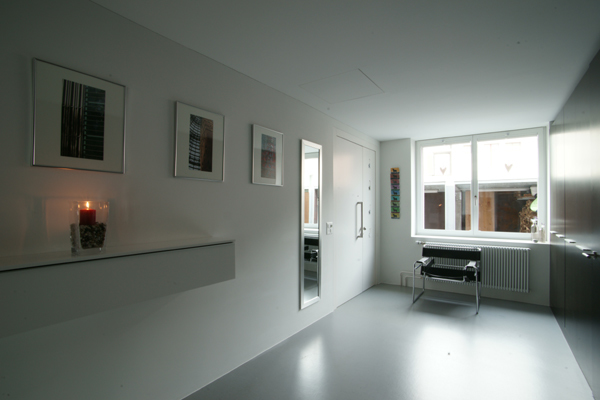 Offenheit von Aussen nach Innen mit den grossen Fenstern sowie grosszügige Raumsituationen zeichnen diesen Bau aus. Wenige Materialien wurden sowohl Innen wie Aussen gezielt eingesetzt. Das ganze Gebäude wurde energetisch nach Minergie Standard saniert.