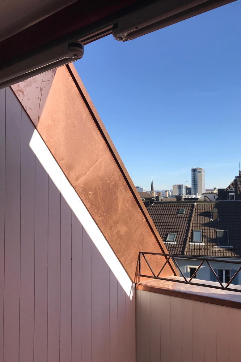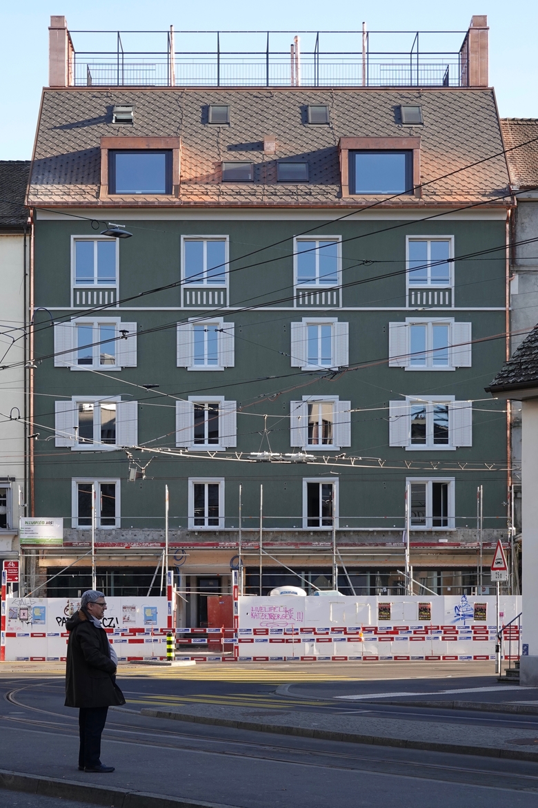 Umbau, Renovation und Aufstockung eines Wohn- und Geschäftshauses von 1895 mit acht Geschosswohnungen und zwei Maisonette-Wohnungen im Dach.