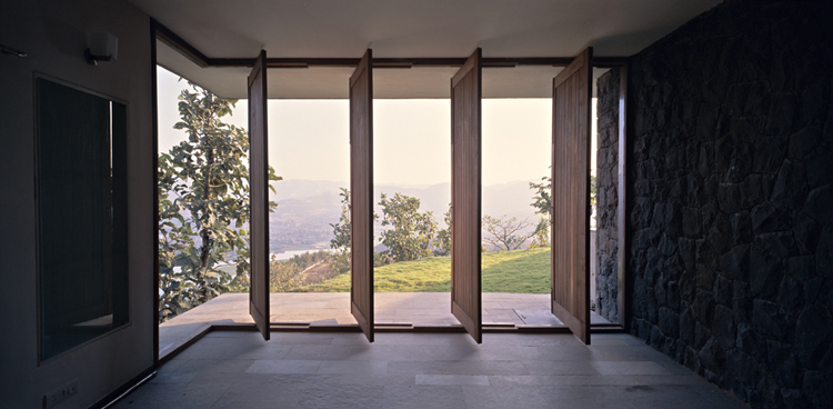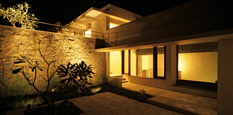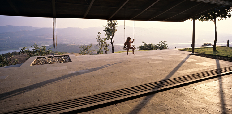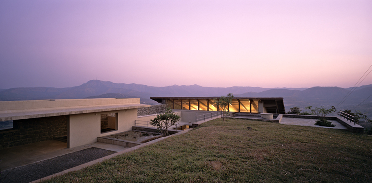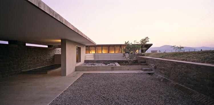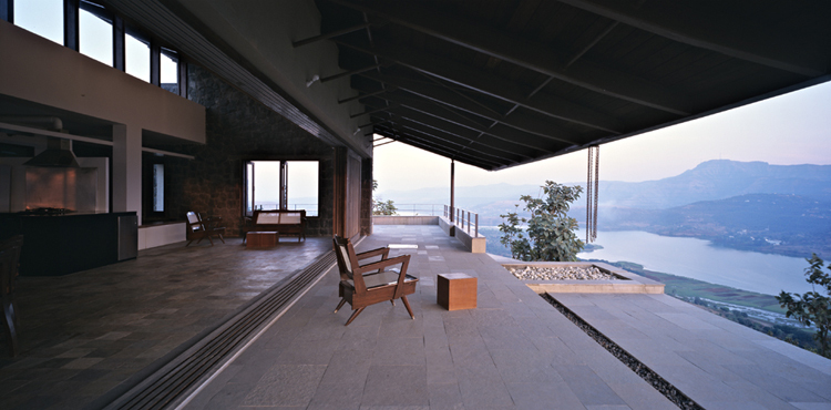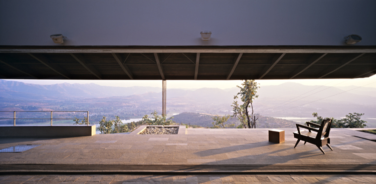 Chiselling the sensory environment of a scenic locale into a work of art, the Architects have sculpted a weekend home at Khadakvasla near Pune, a serene getaway perched high on the mountainous ridge. Its airy pavillion-like ambience is perfect for letting the landscape just flow through it. The house aims to capture the panoramic views that the house commands. The main living space has a 12.0M (36’-0”) clear span with 4.5M cantilever overhang. The roof leans into the southern rain direction and protects the verandah space, while opening up through a north light. The project harvests its rainwater into two underground tanks that make the house self sufficient for its domestic water needs. “The project has tried to gratify our design sensibilities and live up to the idea of a weekend haven which provides a spatial experience, blending architecture and landscape with minimal conflict.”