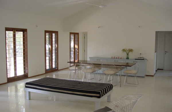 A small and quaint bungalow of understated dignity is tucked away in a serene residential colony. Designed for an elderly Japanese couple, this house is intended to be a reflection of the owners’ lifestyle and signature of simplicity in their life. The bungalow is a linear space having the south side open for a lawn space. The house uses a white terrazzo tile for the interior space and uses a aluminium sheeting as roofing.