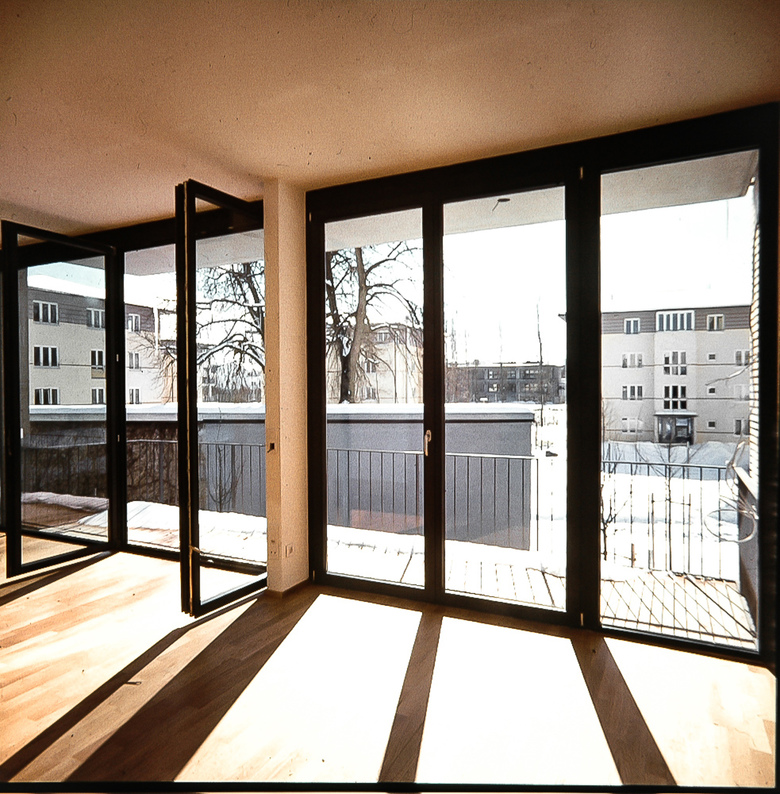 Qualitative innerstädtische Verdichtung mit hochwertigem Wohnraum, Gartenanteil und direktem Tiefgaragen Zugang. Doppelhaushälften von 140 – 160 m² Wohnfläche und flexiblen offenen Grundrissen. Vollverglaste Südfassaden mit Balkonen bzw. Terrassen und außenliegendem Sonnenschutz.