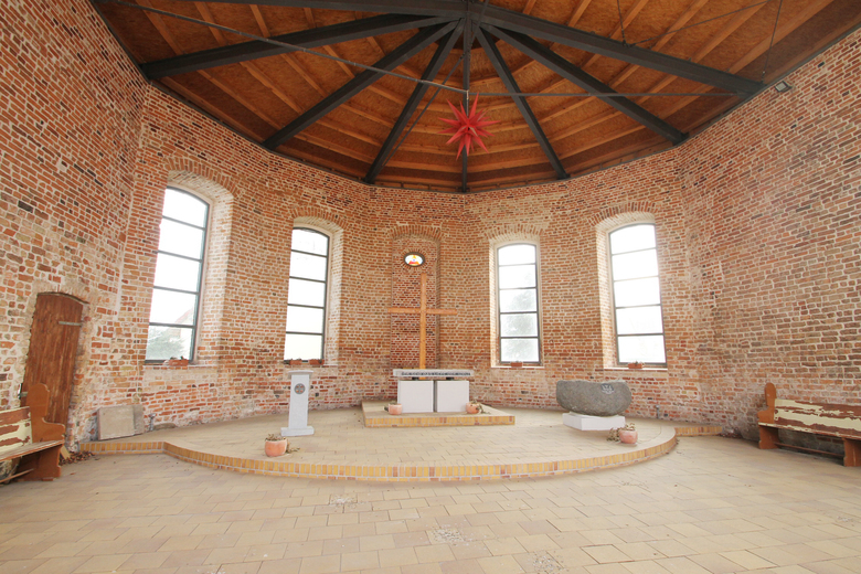 Im Frühjahr 2003 erhielt auch das Kirchenschiff wieder Fenster, die sich an der ursprünglichen Gestalt orientieren und –zumindestens vor seitlicher- Zugluft schüzten.