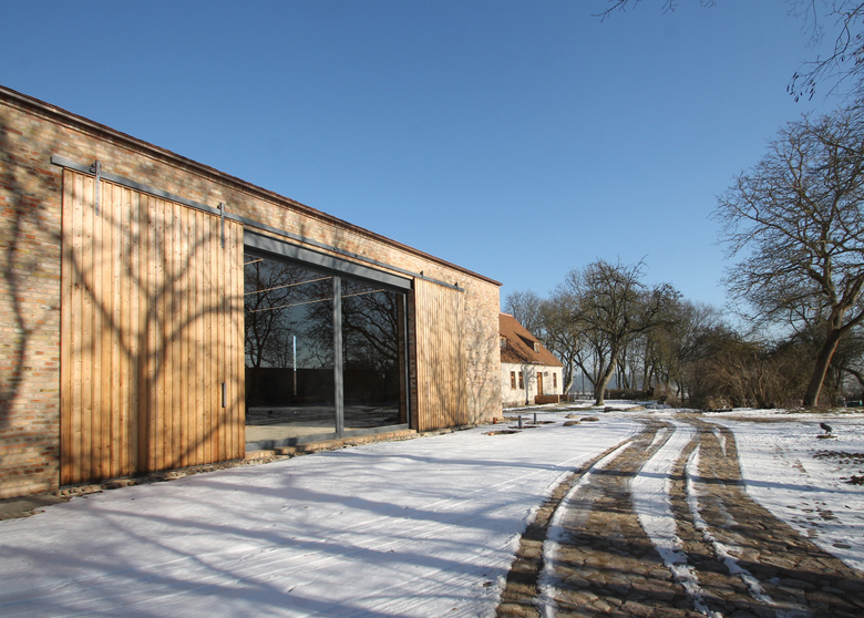 Die Sanierung der bestehenden Gebäude und die Neubauten nach historischem Vorbild stellen einen Vierseitenhof in der unberührten Landschaft der Nordwestuckermark wieder her. Der Hof beherbergt ein Wohnhaus, ein weiteres Wohnhaus mit Gästezimmern, ein Gästehaus, eine Multifunktionsscheune, eine Atelierscheune und Nebengebäude.