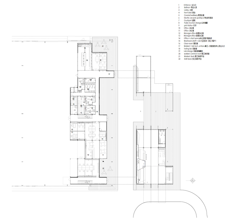 To link the activities of the working people with the visitors of the farm, playze developed a building complex, which combines the main reception, a lobby, (working also for the future hotel rooms) and a vip area, with the new offices and an existing warehouse, where the fruits and vegetables are being packed. The building provides transparency within the manufacturing process. Thus it supports the vision of integrating the visitor and helps to reinforce the consumer confidence in the products of the farm. At the same time the building design is driven by the concept of sustainability, combined with it's iconic qualities, it communicates and promotes the core concept of Tony's Farm.