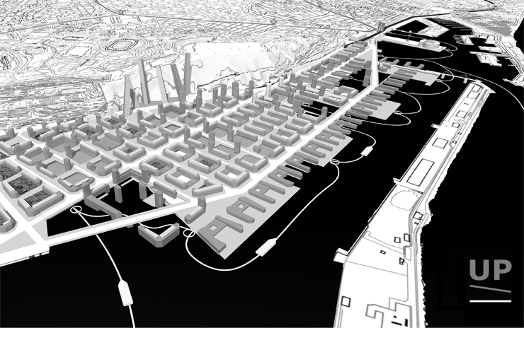 The project was conceived as an opportunity to rethink the city's new strategic extension that connects the maritime existing district but mainly the new city district that built based on the concept of urban dimensional. The current port area facilities obsolete, giving way to a new city and a new productive residential net projected from a new layers project of a symbiotic overlay.