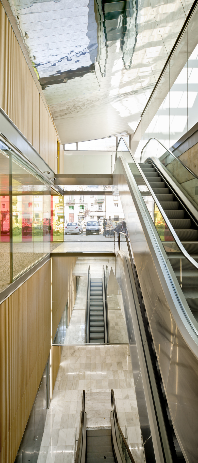 About the form… The ruins mark the structure of the buildings. The Roman forum formalizes the plane of foundations and drains. In the old town, my building sets out to express itself as pure structure—no cladding, no finishes. The bare concrete beams-cum-walls that form the façades are very varied, proving themselves members of the family of the dilapidated neighbouring walls, where plaster crumbles to reveal their original central mass. Filters are juxtaposed on the wall. This cinematographic metaphor is not just conceptual; it is above all physical, sensible. In the old town, with very close relations between buildings, interaction must be mediated, filtered. And this is implemented by a variety of devices, with a vague cinematographic reference. About the space… The space is organized around two movements: a) The descent into the darkness of the cinemas, with the reflection of the spectators (in turn reflected, actors seen in a series of mirrors). b) The ascent towards the light, towards the places of work. Two courtyards, connected but not continuous, accompany and construct the movement.